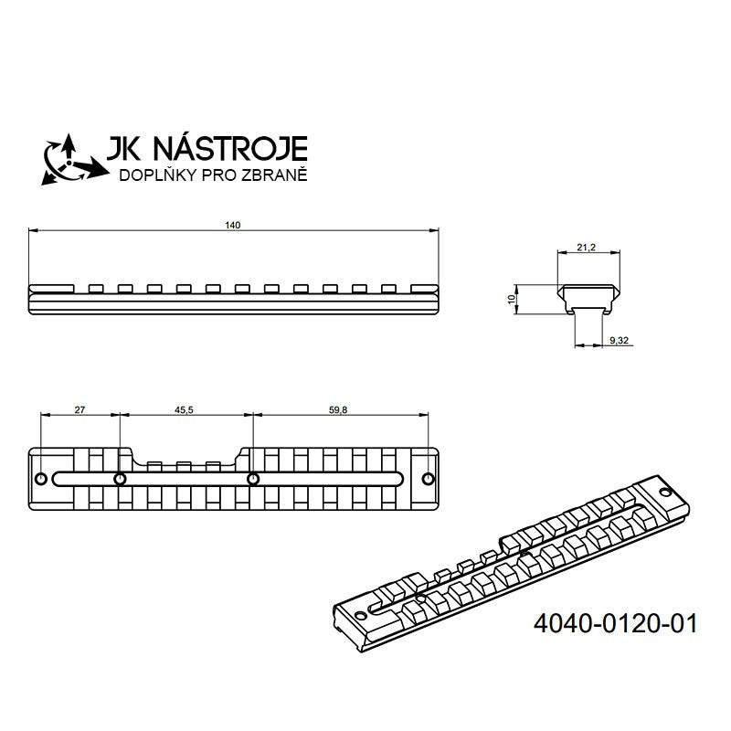 Picatinny-skinne [siktebase] for installasjon av montasjeringer med Picatinny-base.