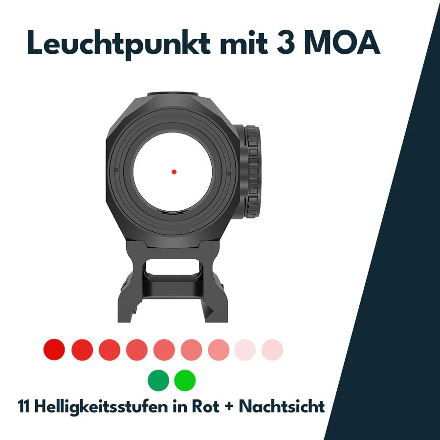 • Prikkens lysstyrke: 8 nivåer + 2 nattoptikk-nivåer