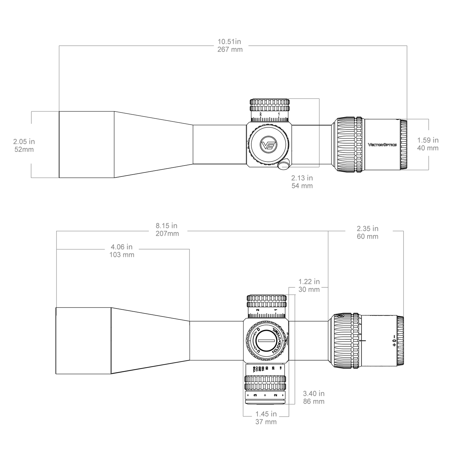 • Klikkverdi: 1/10MIL, 1cm, 0.1MRAD